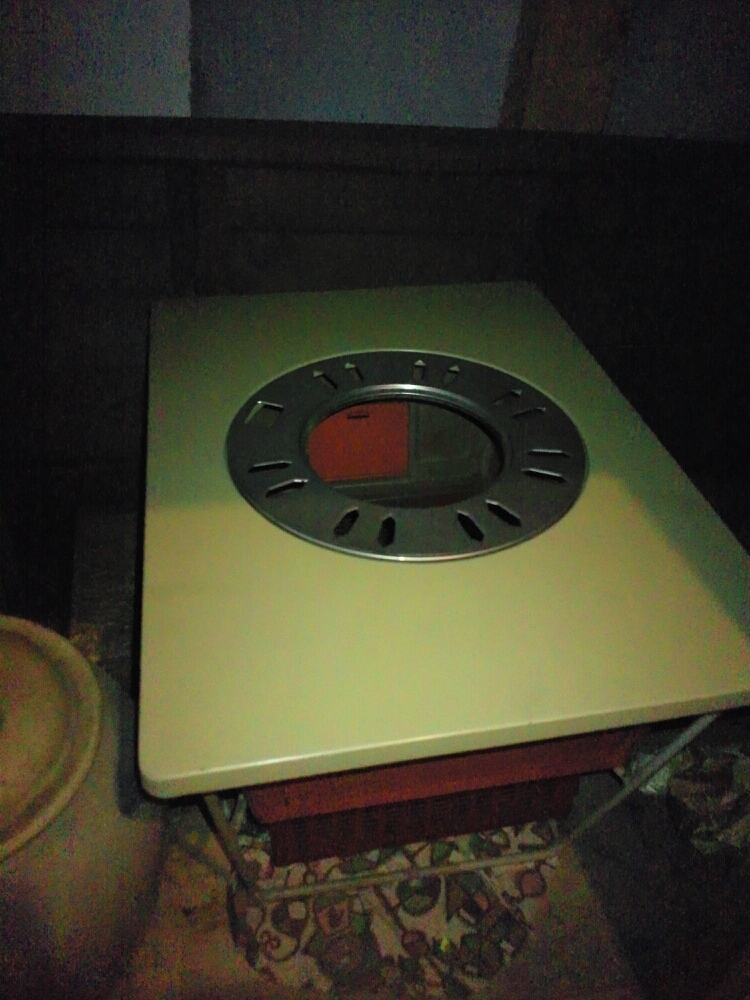 炭こたつ。これの中に炭を入れるのですが、これに布団をかけて大丈夫なのか少し心配。