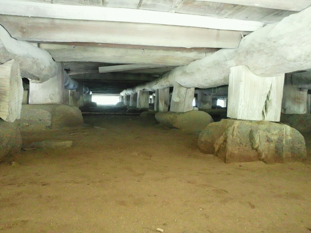 縁の下に行けるようになってて、床下を見たら石の土台にたくさん柱が乗っかってました。コンクリで固めないの大好きです。