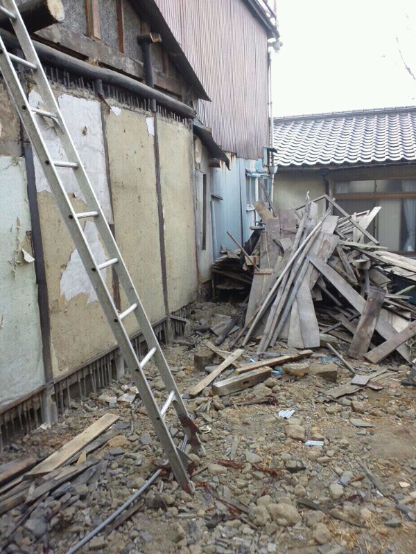 実は取り壊しはすでにあらかた終わっていて、瓦や木材の片づけがメインでしたが。