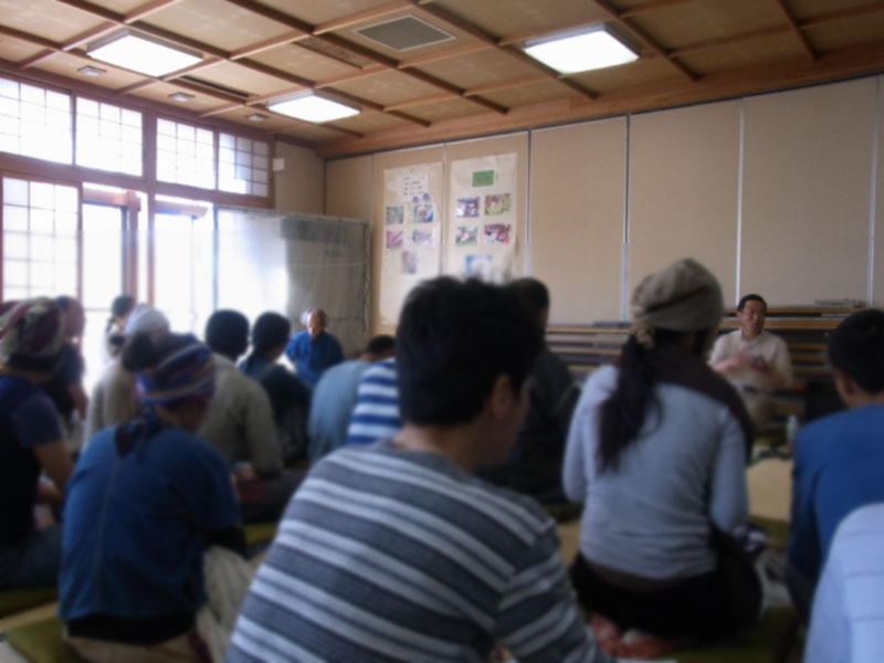 スケジュールが上記のように決まっていて、畑見学の後の座学は「農業と自然農」というテーマが決まっているだけ。「○日の午前は△△についての議論」などと詳細な進行設定などは一切ありません。時には話す人がいなくなりシーンとなることも。それでもしばらくすると誰かが話し始めて、いろんな意見が交わされるという感じでした。都内の会社とかだったらこういうスタイルはまずないと思います。